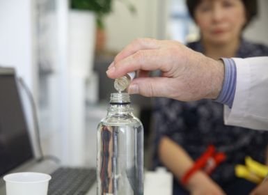 Пациент поэтапно принимает внутрь 50 грамм ФИС, задерживает во рту на несколько секунд, выпивает и комментирует изменения вкусовых качеств воды.