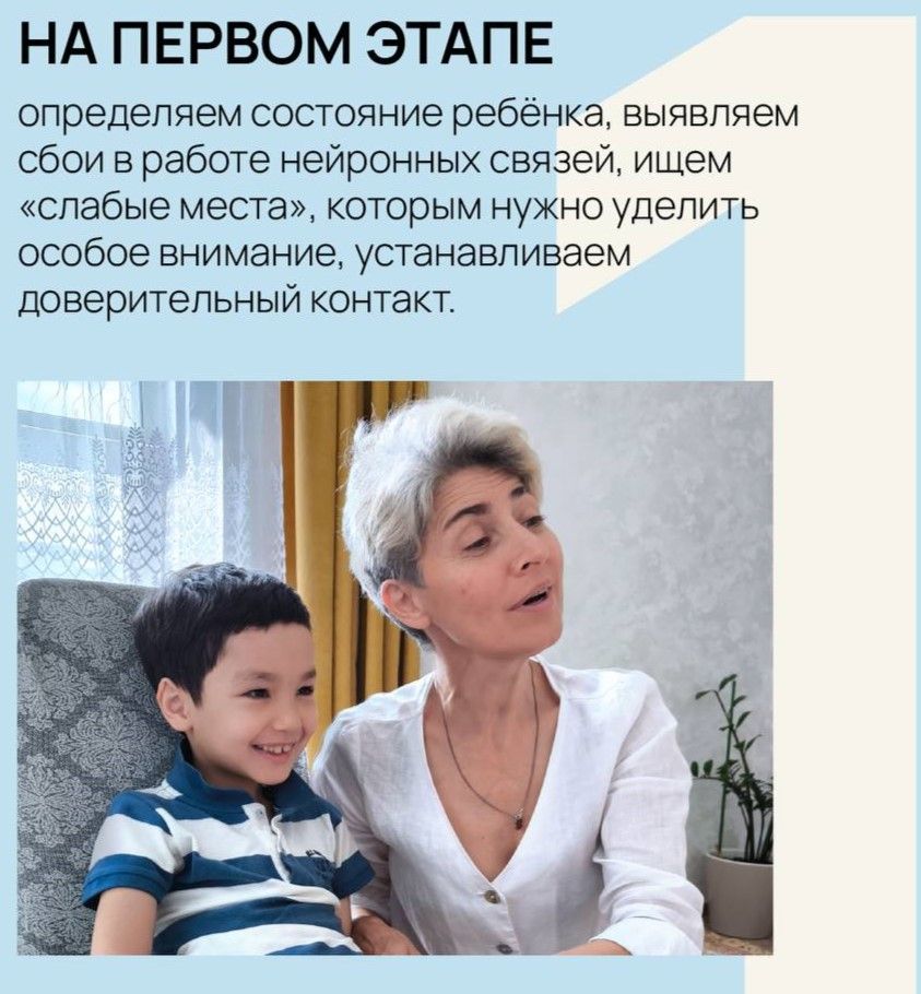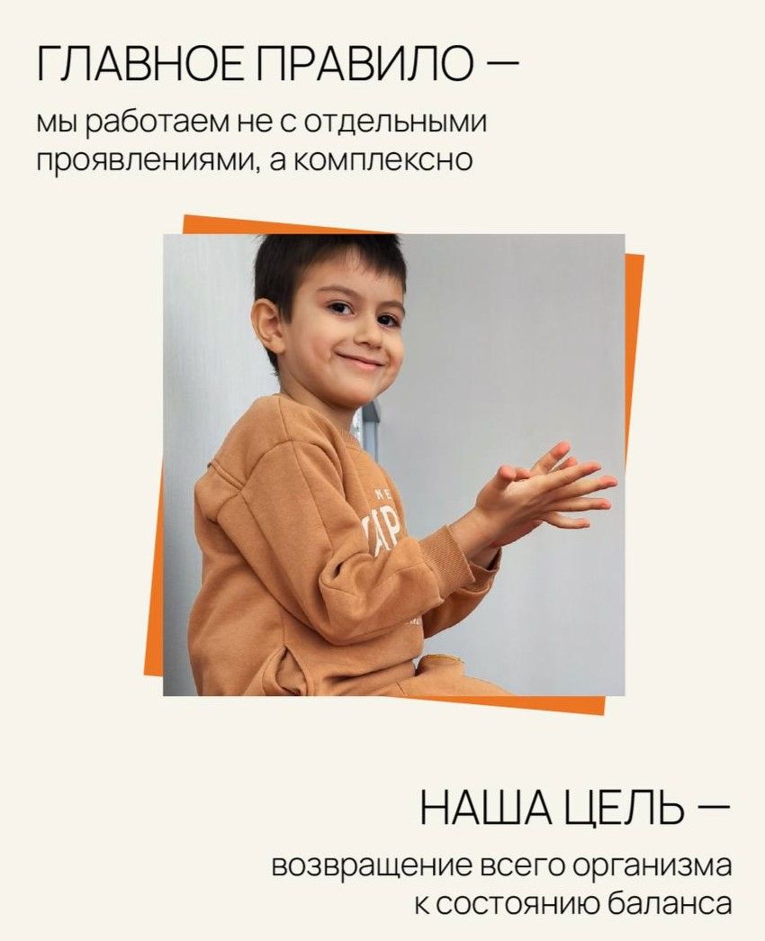 Мы системно подходим к здоровью ребёнка. Вначале мы проводим консультацию с родителями, в ходе которой собирается анамнез, анализируются данные анализов, выписки из роддома, прививочной карты ребёнка, детали развития, диеты, применяемых ранее способов коррекции.