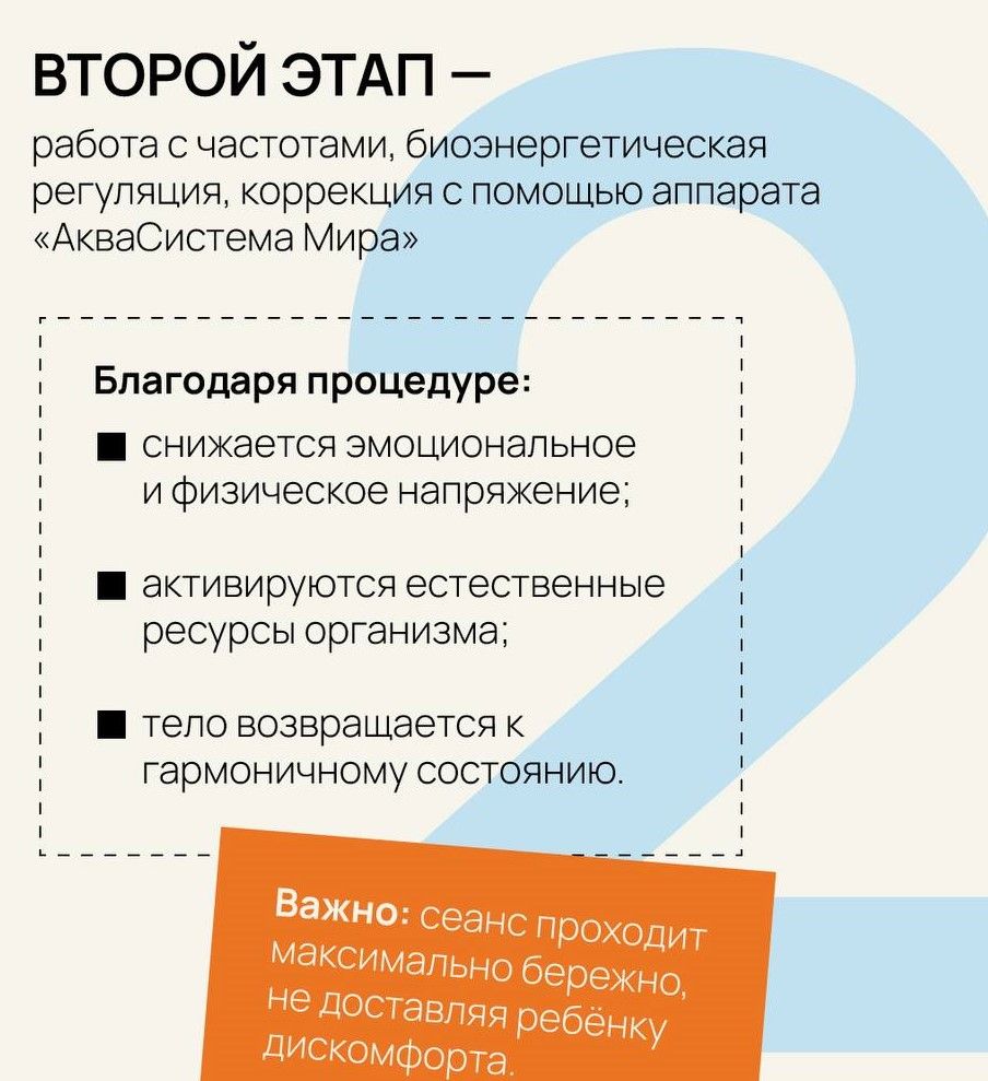 После процедуры волновой коррекции проводится повторная диагностика для контроля динамики процессов. Этот этап позволяет показать положительную динамику воздействия АкваСистемы Мира на организм ребёнка.
