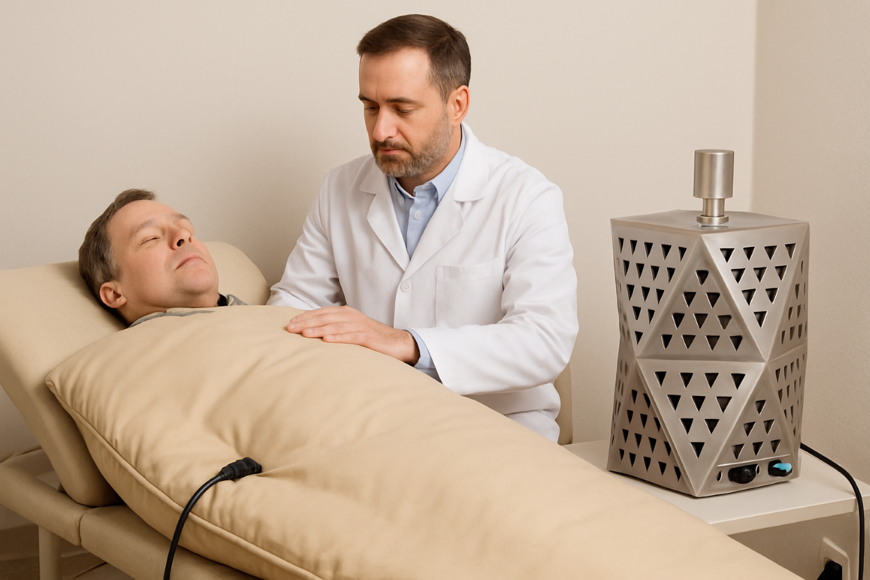 Специально разработанное одеяло для локального воздействия на человека, насыщая электронами мембраны клеток и уменьшая их дефицит в организме. Для этого достаточно завернуть человека в одеяло и подключить к генератору через спецтальный разъём.